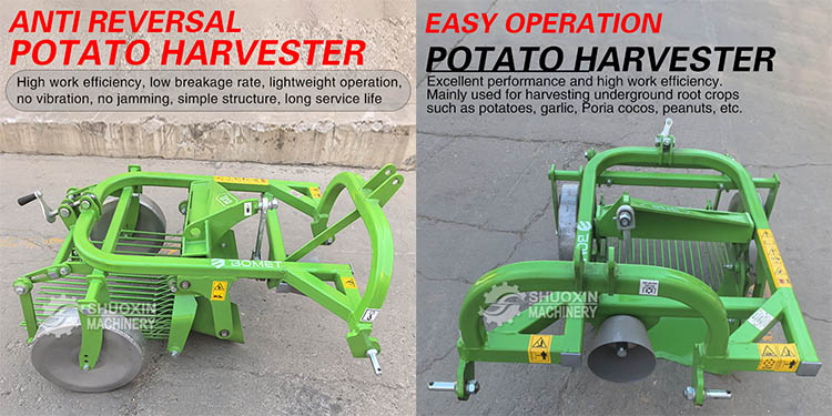 ٹریکٹر سے لگے ہوئے آلو کاٹنے والوں میں اعلی کارکردگی ، کم سے کم فصل کو پہنچنے والے نقصان ، مٹی کی تیز رفتار سے علیحدگی ، اور طویل خدمت کی زندگی ہے۔